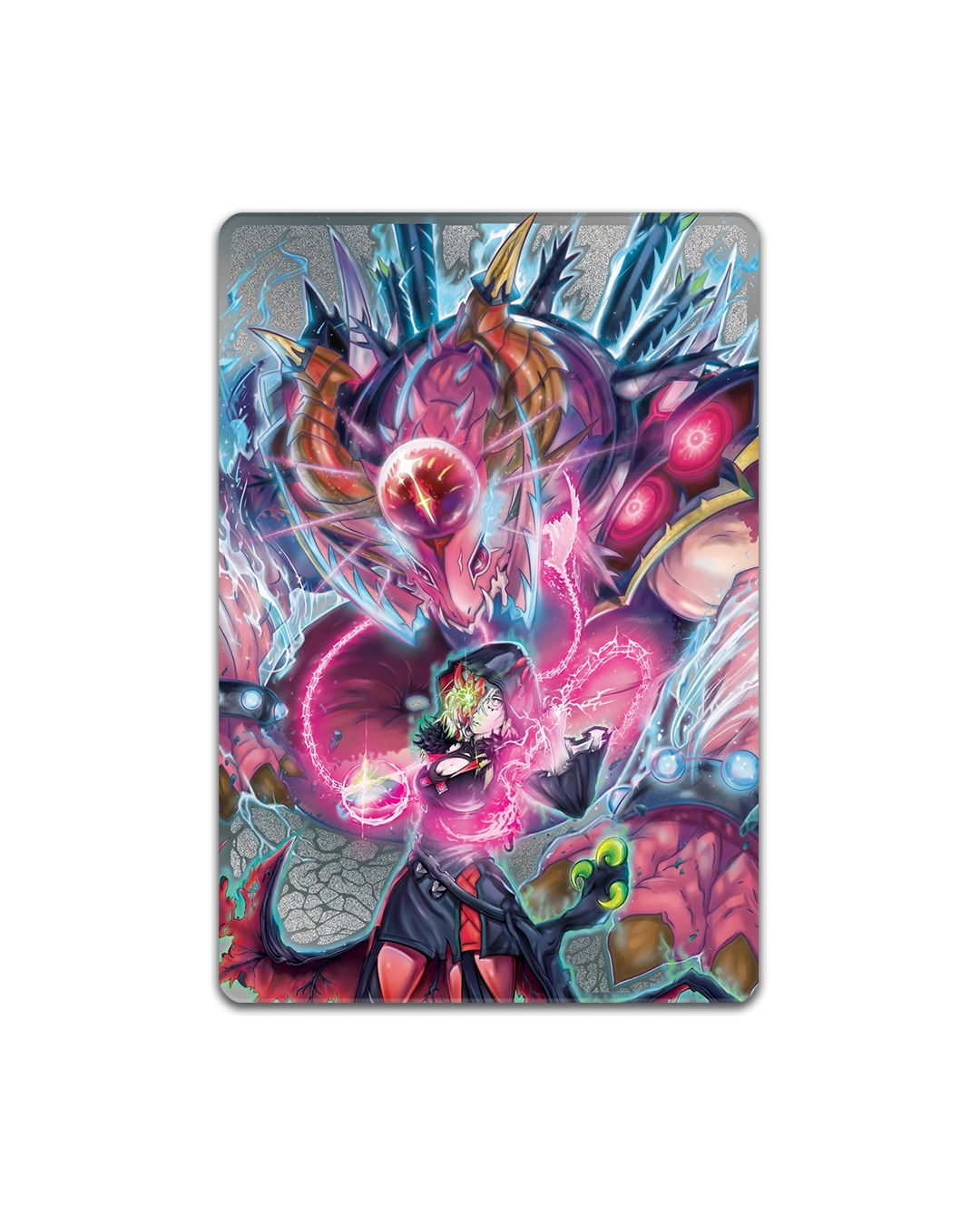 This card, designed to be utilized as a Yu-Gi-Oh! Field Center or token piece, features artwork of the 'Rivalry of Witches' on a serialized dual-sided metal card.