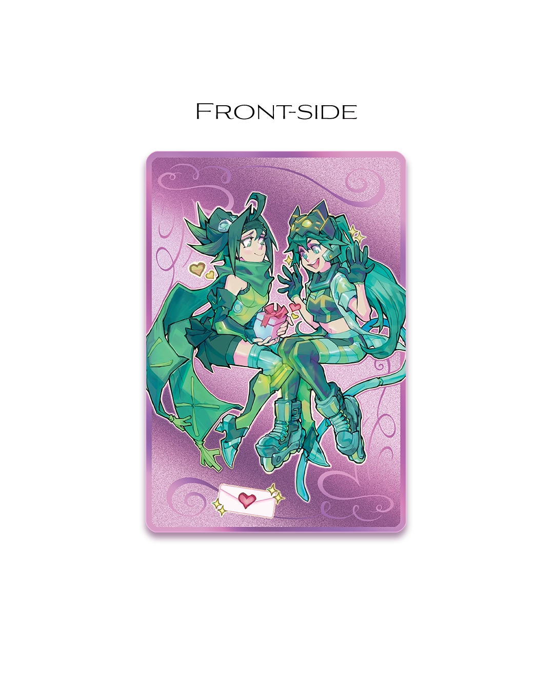 This card, designed to be utilized as a Yu-Gi-Oh! Field Center or token piece, features artwork of the 'Linked b:y Valentine' on a serialized dual-sided metal card.